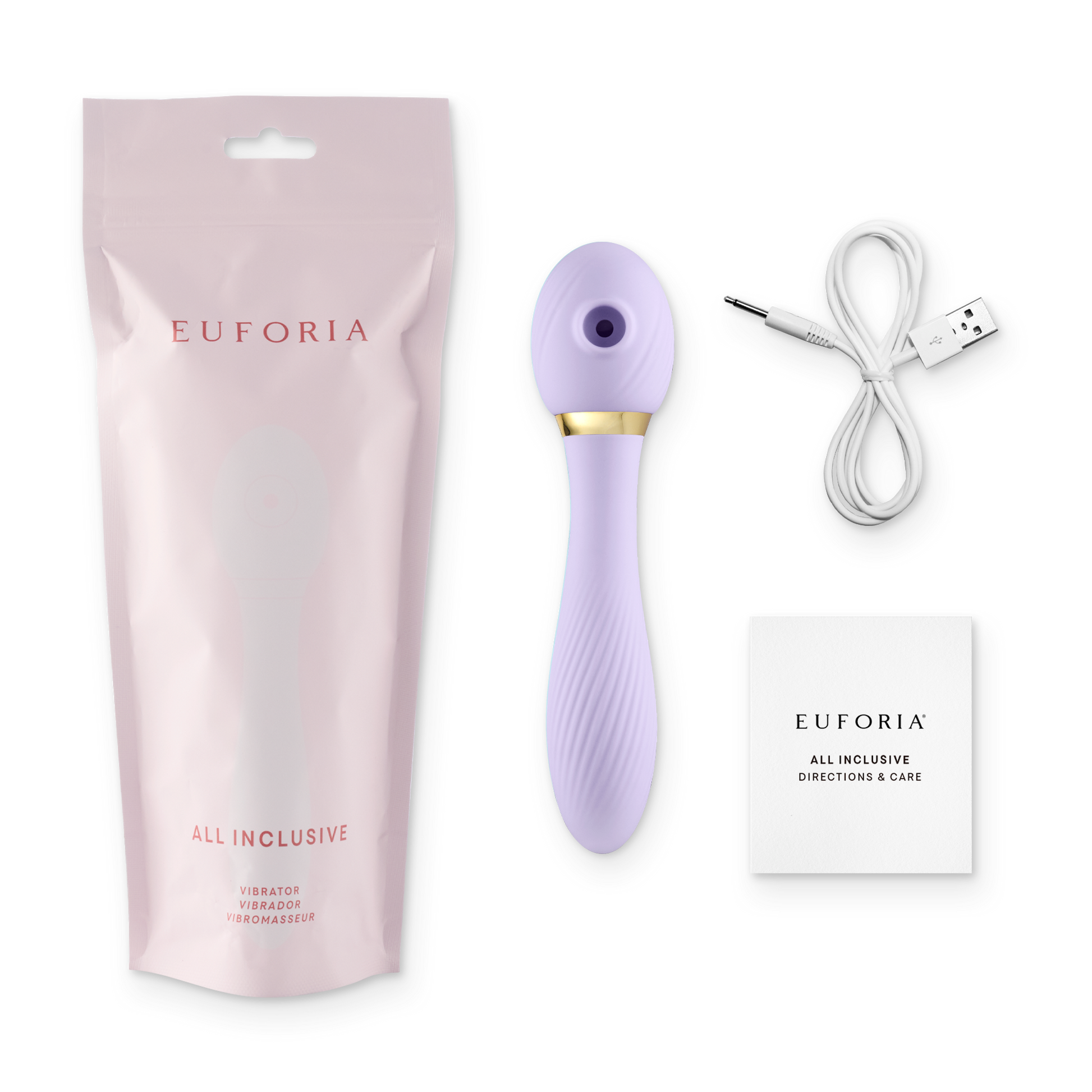 All Inclusive offers unforgettable amenities all packaged in a single perfect pleasure tool. First up is the innovative air chamber that uses air pressure changes to provide three speeds of airotic, oral-like stimulation. On the other end, is the silky-soft silicone shaft that features a spiraled texture and three speeds and seven rhythmic patterns of powerful vibration.
