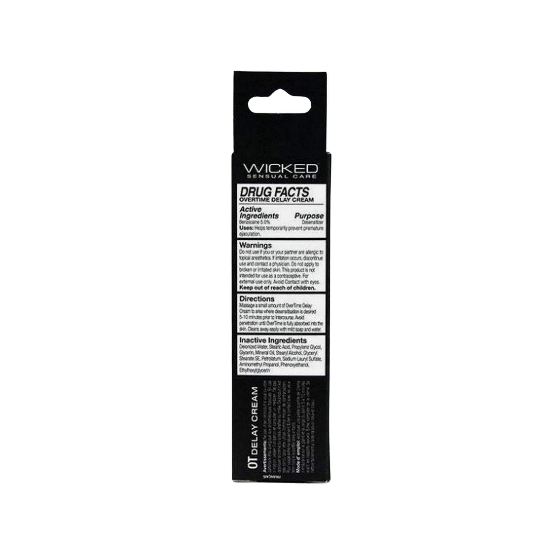 Enjoy a new confidence with OverTime. Wicked Sensual Care Collection OverTime Delay Cream for Men contains 5% Benzocaine to temporarily reduce hyper-sensitivity to delay ejaculation by gently easing the intensity of sensation and allows you the ability to put your love-making into overtime.